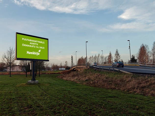 Hankkija Salon markkinointi muodostuu useista toisiaan tukevista kanavista: paikallislehdistä, valtakunnallisesta mainonnasta, sosiaalisesta mediasta ja verkkokaupasta. Digitaalisten ja perinteisten kanavien rinnalla ulkomainonta muodostaa keskeisen osan kokonaisuutta: se tuo brändin vahvasti esiin arjen ympäristöissä ja tavoittaa asiakkaat tilanteissa, joissa ostotarpeita syntyy ja päätöksiä tehdään.