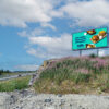 Mediataulu sijaitsee kauppakeskittymän läheisyydessä ja näkyy myös huoltoaseman ohittavalle tielle.