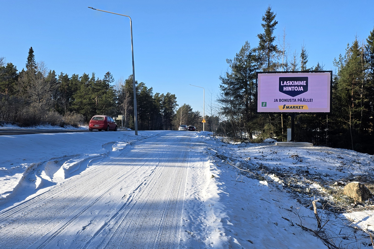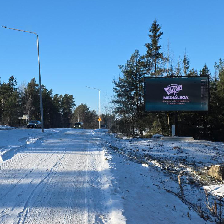 Erittäin näyttävä 15 neliömetrin kokoinen mediataulu sijaitsee sijaitsee keskeisellä paikalla vain noin 2 km ennen vähittäiskaupan keskittymää. Tavoittaa erittäin tehokkaasti Kantatie 43:n kautta Kalannin ja Laitilan suunnasta Uuteenkaupunkiin suuntaavan liikenteen.